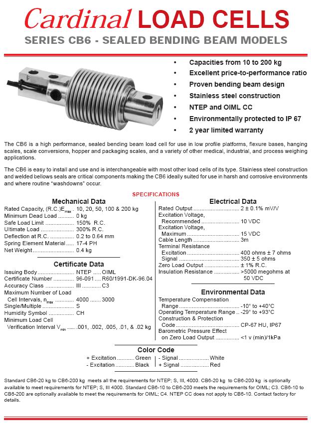Csrdinal CB6 波紋管稱重傳感器(load cells)
