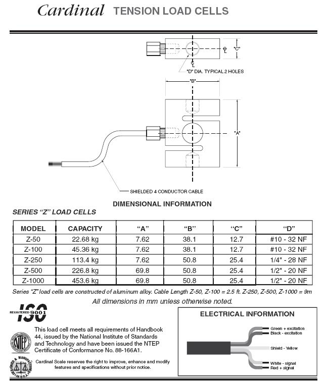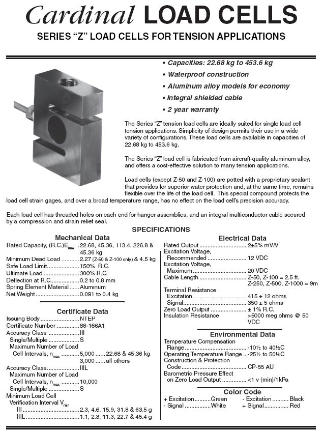 Cardinal Z S型稱重傳感器(load cells)