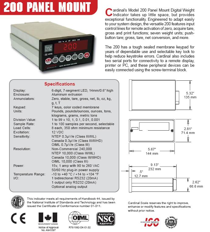 產(chǎn)品名稱:Cardinal 200 稱重顯示儀表(indicator) |