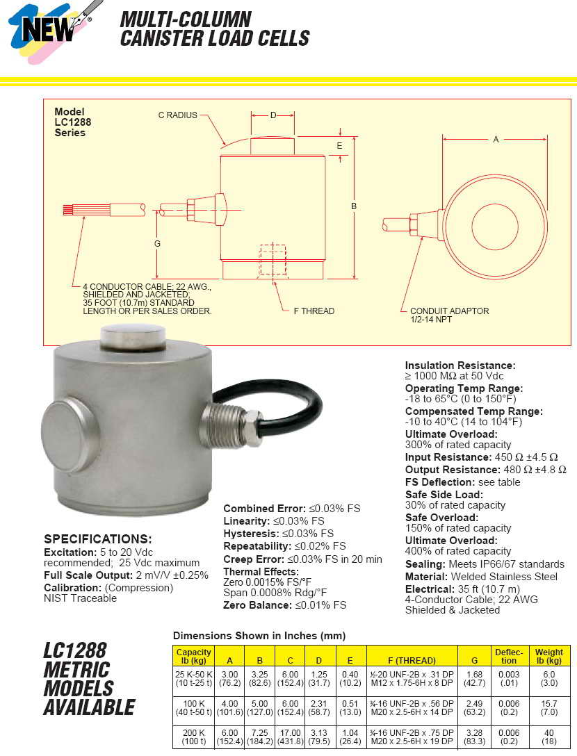 產(chǎn)品名稱:Omega LC1288 柱式傳感器(load cells) |