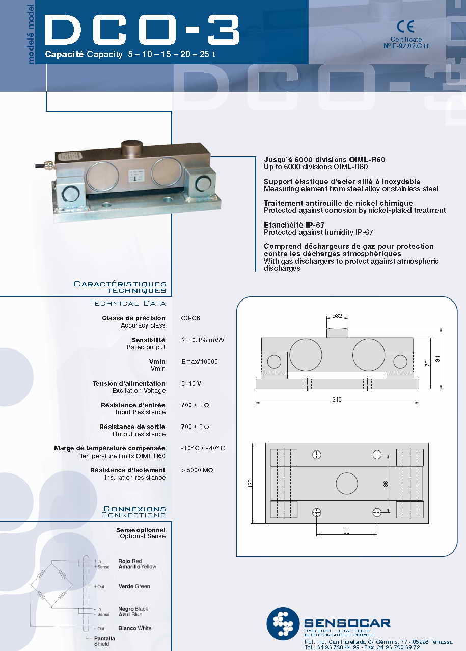 產(chǎn)品名稱:Sensocar DCO-3 壓式稱重傳感器(load cells) |