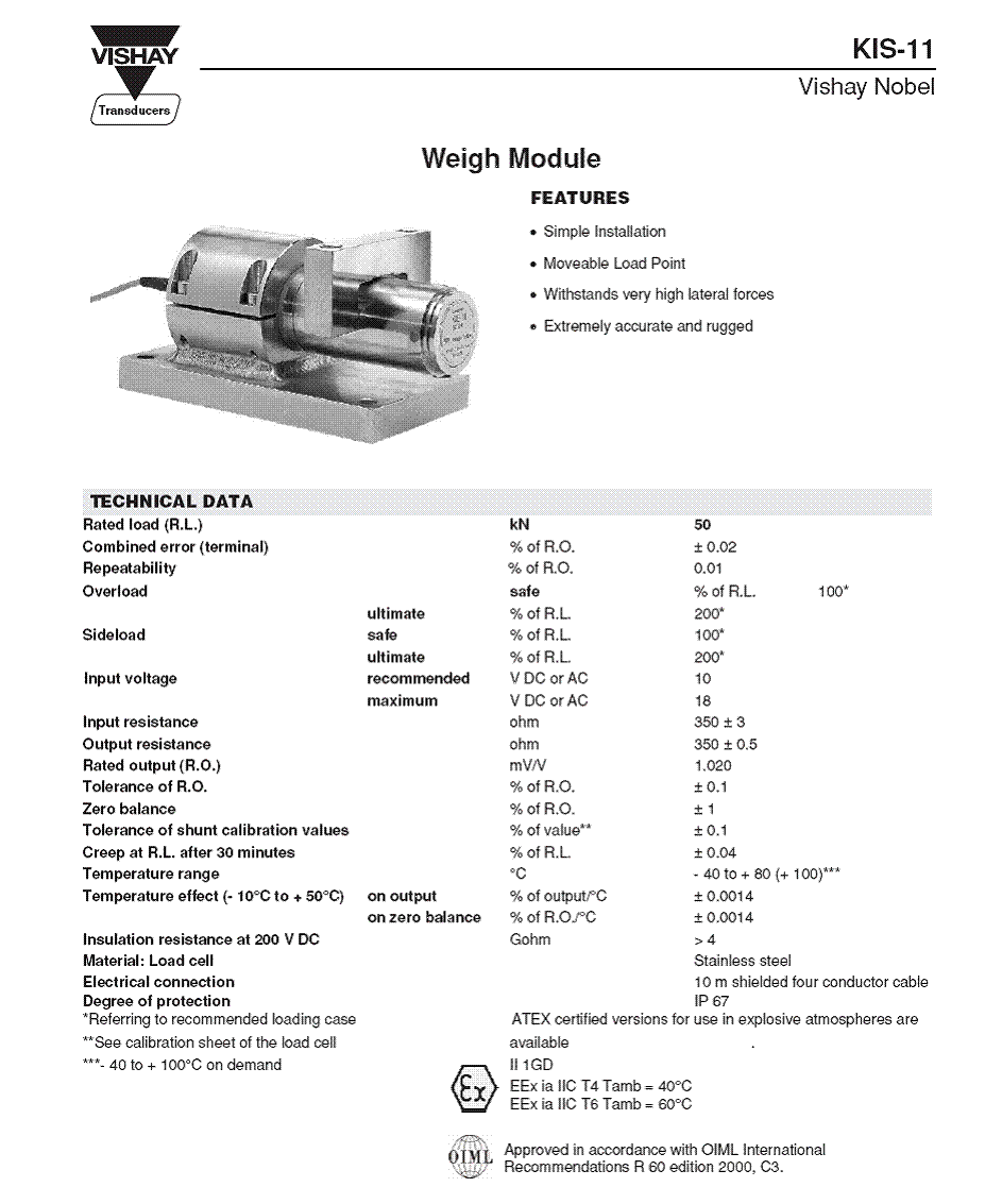 產(chǎn)品名稱:KIS-11 稱重模塊(weigh module) |
