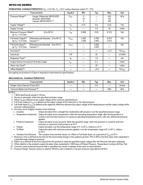MPX5100 氣壓傳感器(sensor)