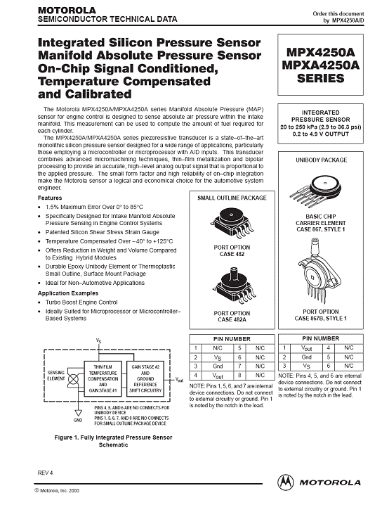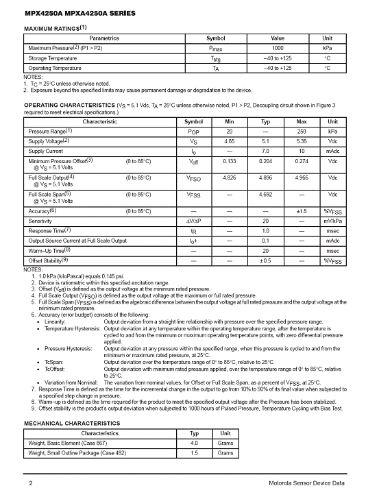 產(chǎn)品名稱:MPX4250A 氣壓傳感器(sensor) |