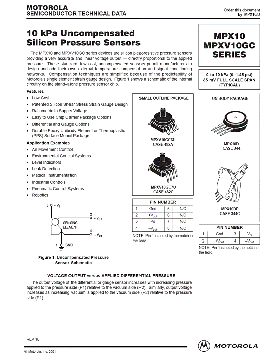 MPX10 氣壓傳感器(pressure sensor)