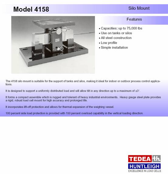 產(chǎn)品名稱(chēng):Tedea 4158SM 稱(chēng)重模塊(Silo Mount) |
