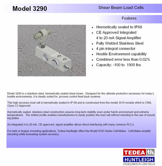產(chǎn)品名稱(chēng):Tedea 3290 稱(chēng)重傳感器(load cells) |