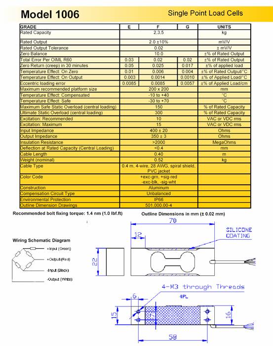 描述:1006是專門為低量程秤設計的單點式、高精度傳感器,特別適用于包裹秤、計數(shù)秤以及一般用途秤。也廣泛的使用在力測量應用,如工業(yè)過程控制和專門的醫(yī)療機械。