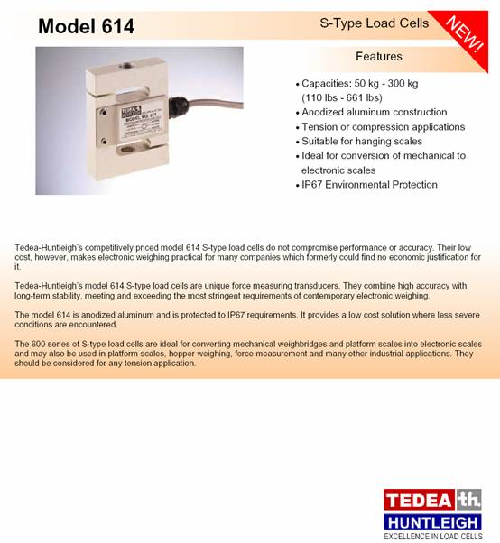 產(chǎn)品名稱:Tedea 614 稱重傳感器(load cells) |